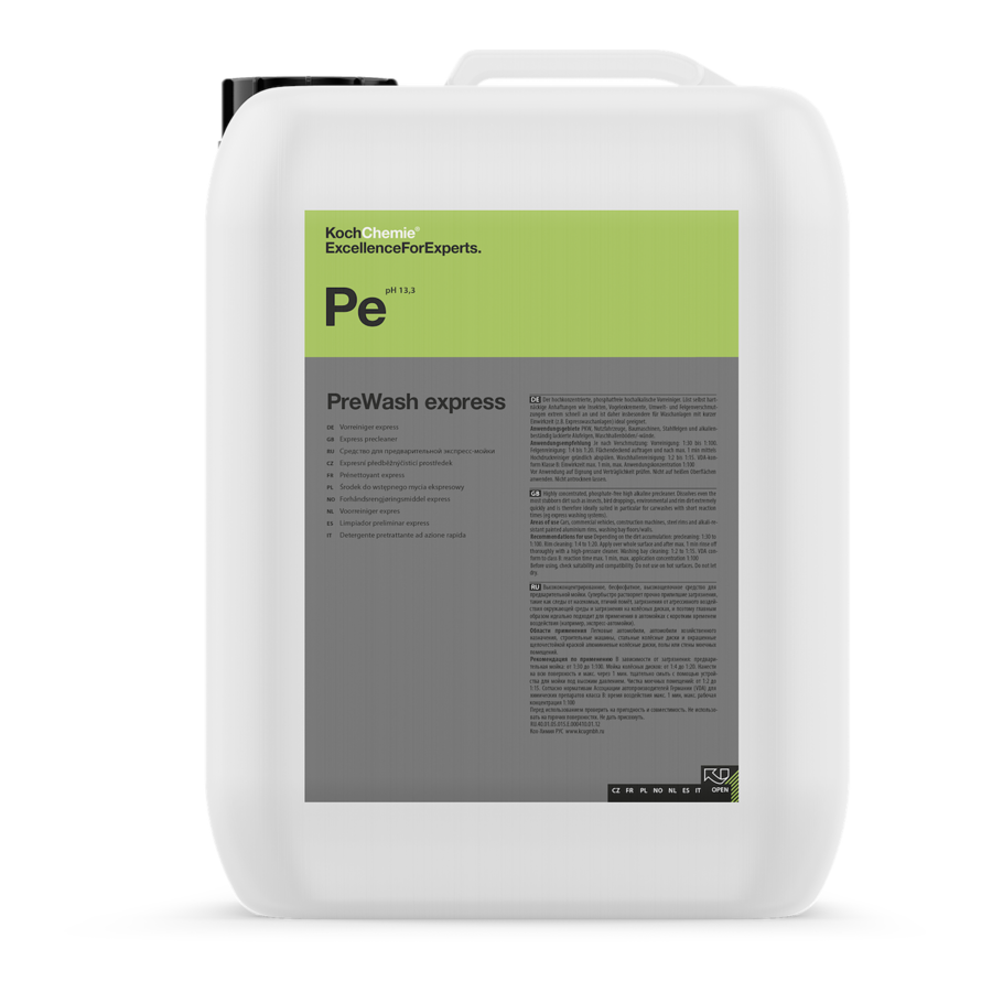 Высококонцентрированное, бесфосфатное, высокощелочное средство для предварительной мойки легковых и грузовых автомобилей. Смесь из высококачественных комплексообразующих веществ и специальных тензидов мгновенно растворяет прочно прилипшие загрязнения, такие как следы от насекомых, птичий помёт, загрязнения от агрессивного воздействия окружающей среды и загрязнения на колёсных дисках, и поэтому главным образом идеально подходит для применения в автомойках с коротким временем воздействия (например, экспрессавтомойки), а также щелочной чистки моечных помещений. Кроме того, оптимально подходит для использования в сооружениях биологической очистки технической воды. Согласно нормативам Ассоциации автопроизводителей Германии (VDA) для химических препаратов класса В: время воздействия макс. 1 мин, макс. рабочая концентрация 1:100