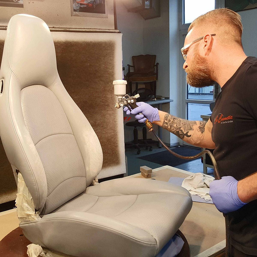 Краска для кожи изготовлена на водной основе и, если следовать инструкциям в каждом конкретном случае (предварительная очистка, растворение, грунтовка, покрытие прозрачным лаком), обеспечивает отличную адгезию и укрывистость. Краситель для кожи одобрен для поверхностного окрашивания автомобильной кожи, мебельной кожи и авиационной кожи. Доступен в базовых цветах, а также в виде смеси специальных цветов.