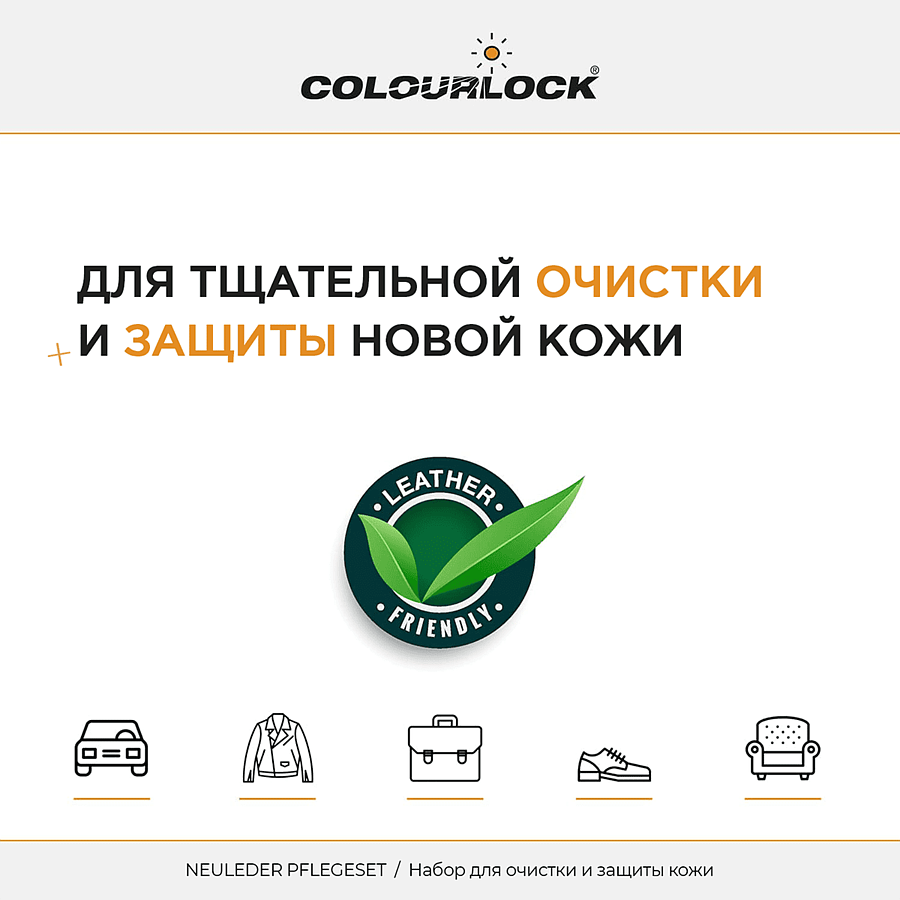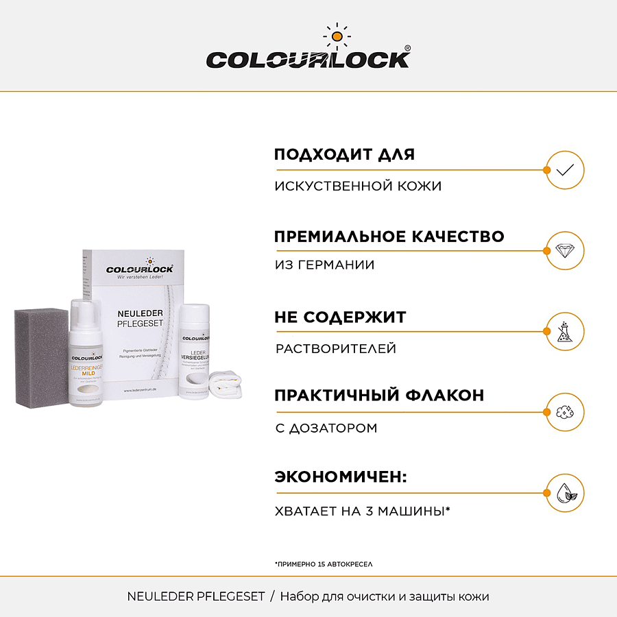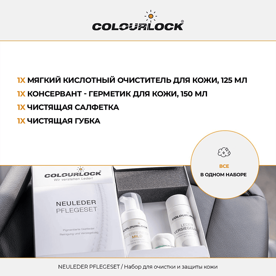 Набор для очистки и защиты кожи автомобиля COLOURLOCK Neuleder Pflegeset mit Leder Versiegelung Leather Shield LZ-11057