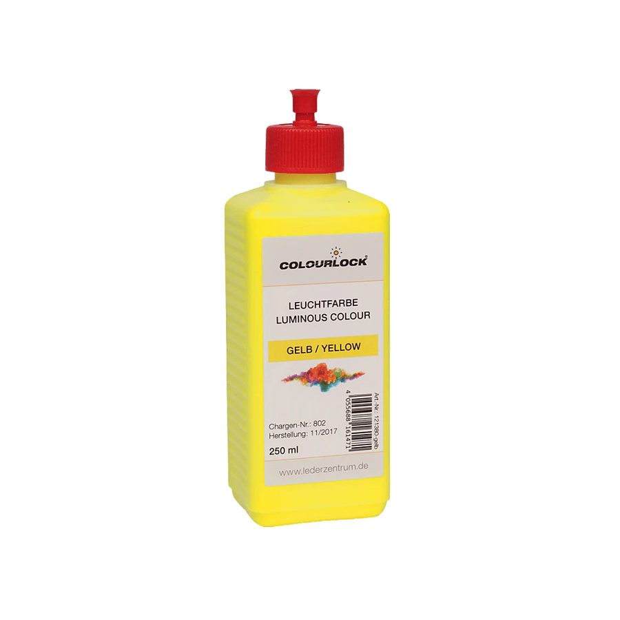 Светящаяся краска COLOURLOCK, желтый, 250 мл, для перекрашивания или повторной покраски пигментированной гладкой кожи, а также для перекрашивания или повторной покраски искусственной кожи и пластика.