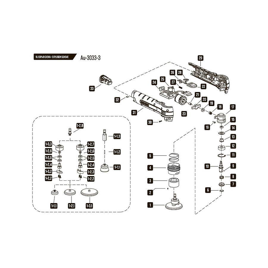 - Система 3-в-1: легкая смена типа привода. В арсенале полировщика эксцентриковые насадки на 8 и 12 мм для деликатной коррекции лака и выведения финиша, а также роторная насадка для точечных задач.
