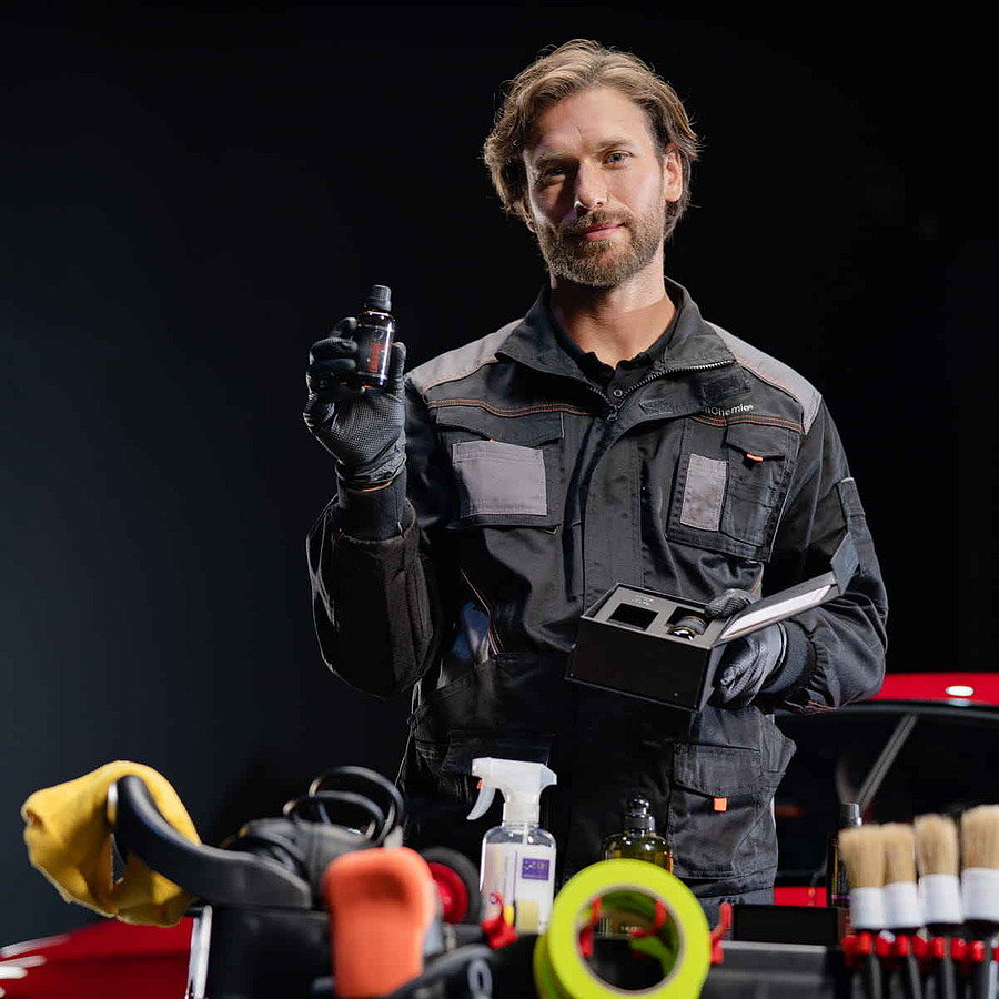 - За 2,5 часа перед выдачей можно нанести состав 1K-NANO LACK от Koch Chemie, через 15 минут после его нанесения, располируйте микрофиброй. Спустя 2 часа машина готова к показу и выдаче клиенту.