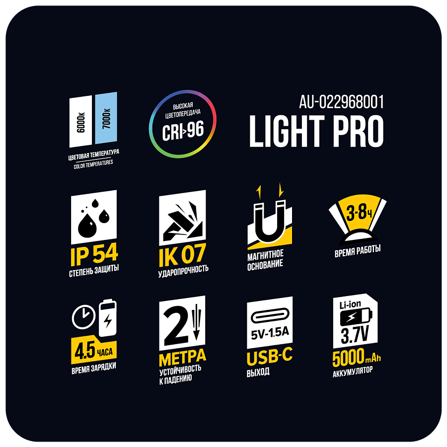Ручной аккумуляторный фонарь 800 лм. CRI>96 Au-022968001