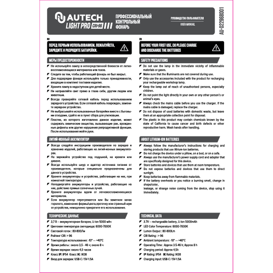 Ручной светодиодный аккумуляторный фонарь - Autech Au-022968001