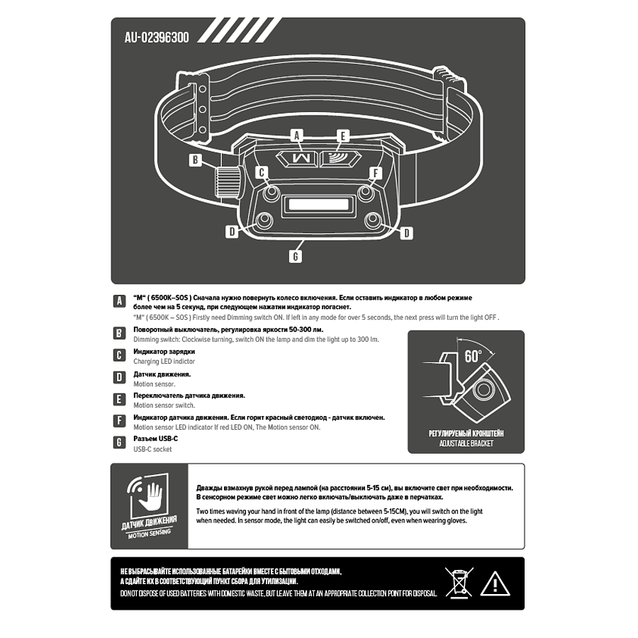 Обладает сенсорным режимом, при котором включается / выключается только взмахом руки перед лампой. Таким образом, свет можно легко включить / выключить даже в толстых перчатках. Благодаря боковому колёсику происходит плавная регулировка от 50 до 300 лм.