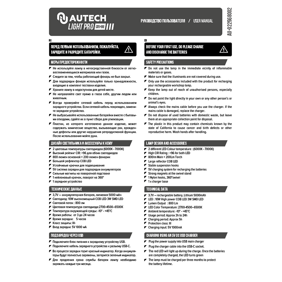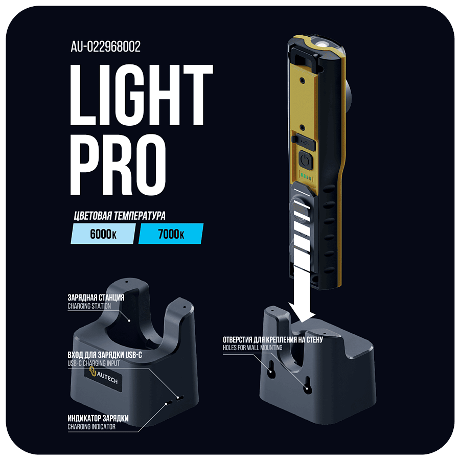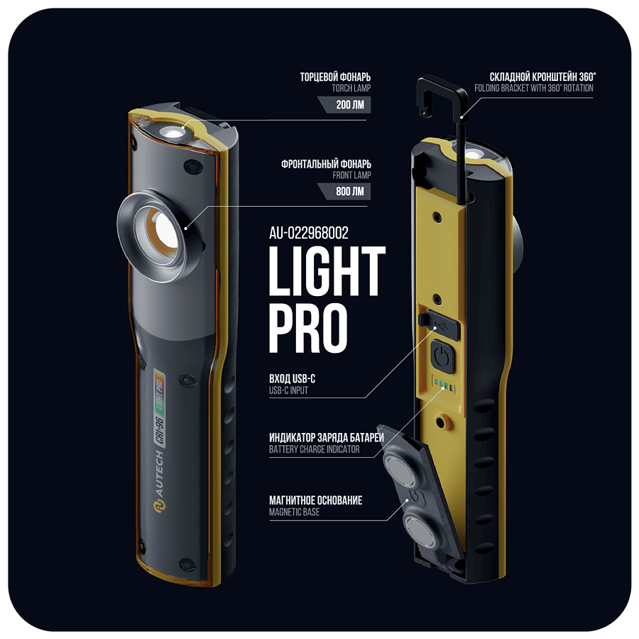 Ручной аккумуляторный фонарь 800 лм. CRI>96 Au-022968002