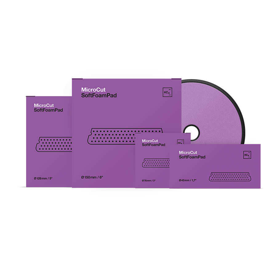 Специальное обновление поролон для Micro Cut Pad. Мы приложили много усилий для улучшения Micro Cut Pad. Теперь в нашем портфолио есть 2 версии данного полировального круга с разной степенью сжатия. Отдельно выделены круги из мягкого поролона Micro Cut, разработанной для сложных красок (например, липкие краски) и круги из жесткого поролона Micro Cut для использования на красках с высоким содержанием сухого остатка. Для простой идентификации данные круги отличаются визуально. На упаковке круга есть знак ромба с надписью "Hard" или перо с надписью "Soft". Сами круги так же имеют отличия. Твёрдые круги имеют тёмно-фиолетовую поверхность липучки и значку ромба на ней. Мягкий круги имеют светло-фиолетовую липучку и значок пера на ней.