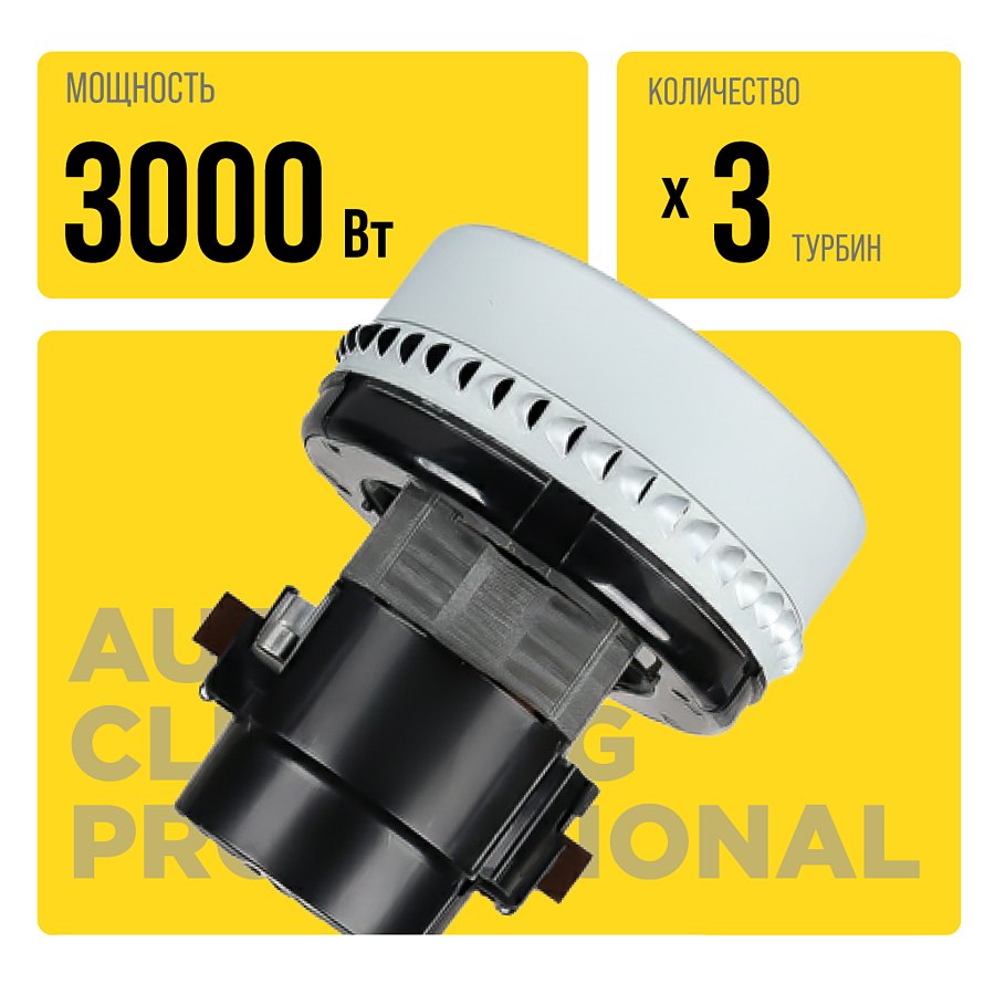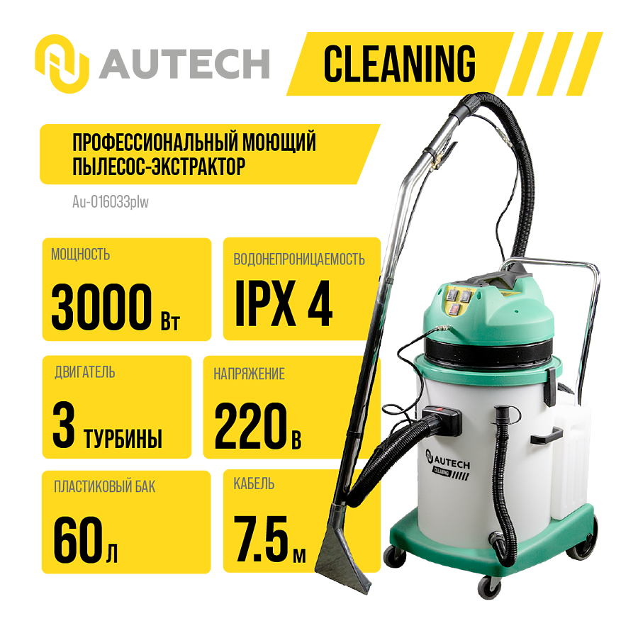 Моющий пылесос экстрактор для влажной уборки и химчистки тканевых поверхностей с пластиковым баком. 3000 Вт, 3 турбины Au-016033plw