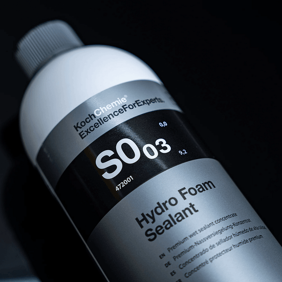 Hydro Foam Sealant S0.03, Антипыльный, Супергидрофобный и с высокой степенью блеска, УФ защиты и длительностью удержания на лакокрасочном покрытии автомобиля. Концентрат силоксана премиум-класса для формирования водоотталкивающей поверхности (лакокрасочного покрытия, стекла и пластмассы) и придания ощущения бархатистого лоска. Новейшая формула для придания насыщенного блеска в сочетании с высококачественными защитными компонентами обеспечивает чрезвычайно насыщенный блеск лакокрасочного покрытия, противодействует выцветанию не окрашенных пластмассовых деталей и значительно повышает водонепроницаемость крыш кабриолетов. Во время дождя он также обеспечивает хорошую видимость благодаря быстрому стеканию капель со стеклянных поверхностей. Фруктовый аромат вишни дарит интенсивное и устойчивое ощущение свежести. Регулярное использование способствует сохранению и накоплению защитного слоя, способного служить несколько моек без перенанесения состава. Одной из задач создания состава было обеспечение антипыльности поверхности. Пылеудержанием страдают все составы конкурентов, типа гидрошайнов, кварцев и прочего. KochChemie значительно перевернула понимание быстрой защиты и длительного эффекта без накопления пыли. Высокая концентрация и разведение 1:750, делают состав высококонкурентным не только по цене, но и по полученному блестящему и длительному результату. Идеальный результат достигается в сочетании с шампунем Reactivation Shampoo.