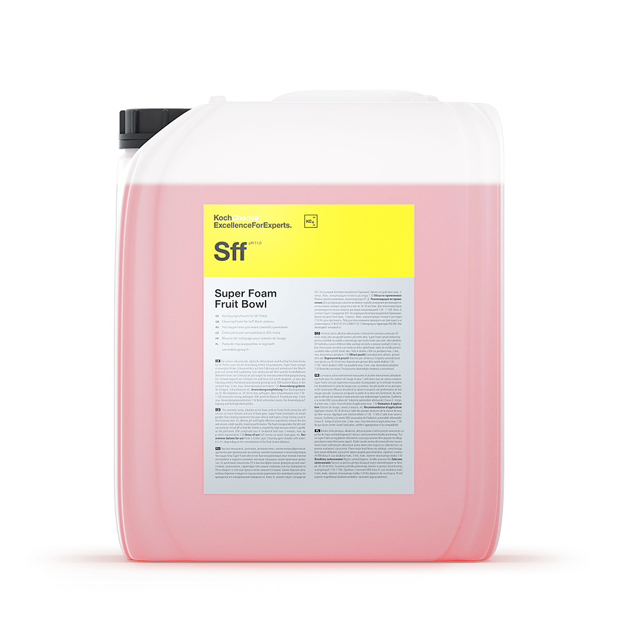 Высоко пенящаяся, щелочная, активная пена с интенсивным фруктовым ароматом для применения на мойках и мойках самообслуживания. Чистящая пена Super Foam обеспечит Вам несравненный опыт пенной очистки автомобиля и надолго наполнит моечную площадку своим приятным ароматом. Её щелочной показатель РН и высокоэффективная формула размягчают стойкие загрязнения и действует как первичные шампуни при этом имеет ПАВ для ручного или механической поверхностей. Очищая и вымывая поверхности, гарантируя тем самым глубокую очистку поверхности. Пена вбирает в себя всю грязь и легко смывается водой. Таким образом автомобиль бережно очищается под высоким давлением без малейшей угрозы повреждения его лакированной поверхности. Класс A, соответствует стандартам ААГ (Ассоциации Автопроизводителей Германии).