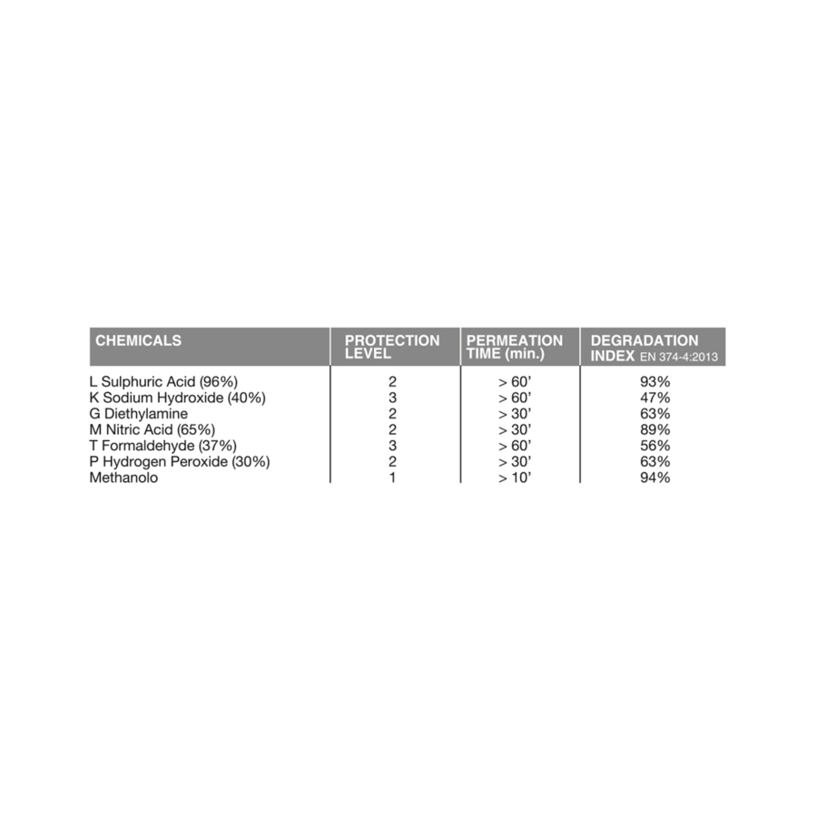 EN ISO 374-1: 2016 / ТИП A : сертификат с 6 химическими элементами