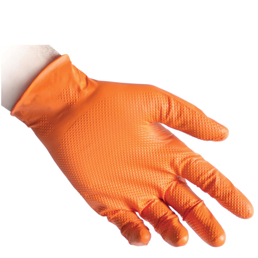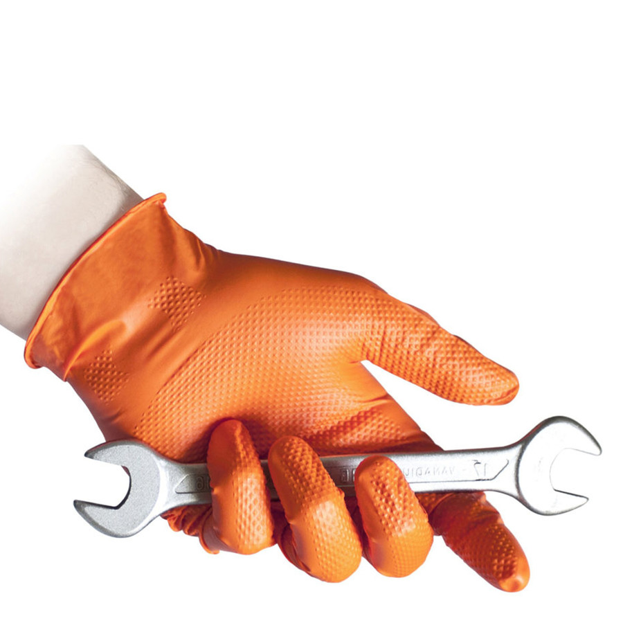 Высокая устойчивость к нагрузкам: специальная структура 3D Grip - и большая плотность перчатки - вес 8,4 гр при толщине 0,20 мм - делают их особенно пригодным для работы на сервисах, производствах и всё, что связано с механическими ремонтами, где степень разрыва перчаток значительно выше.
