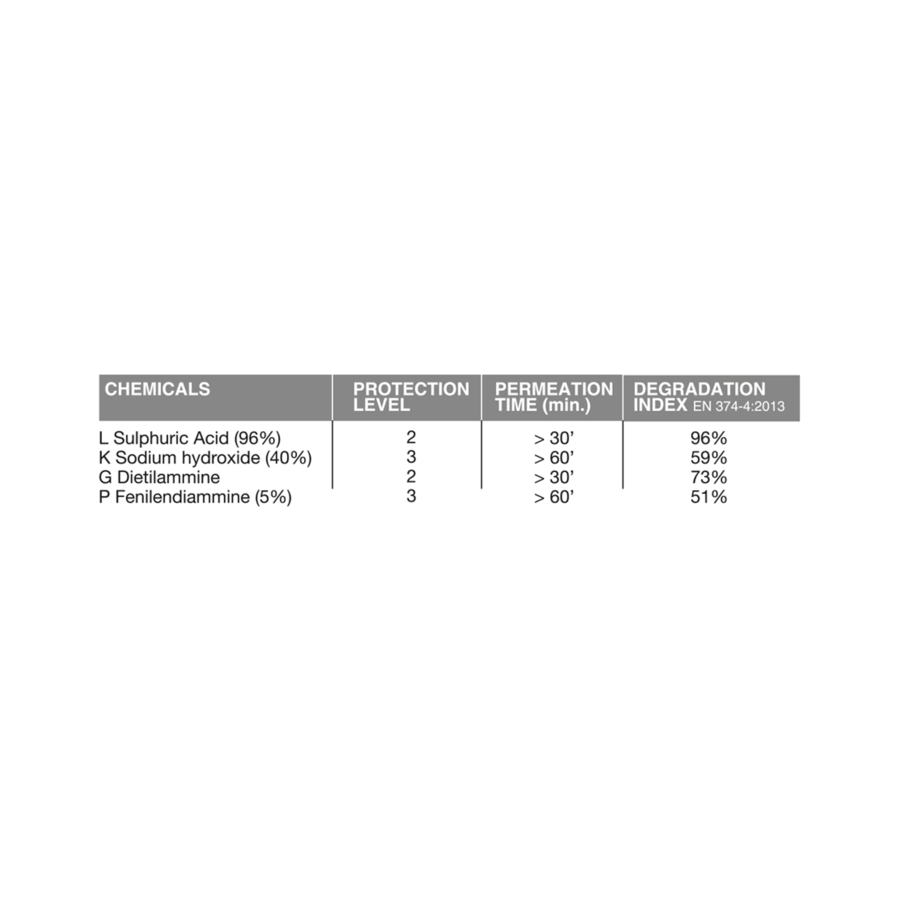 EN ISO 374-1: 2016 / ТИП B : сертификат с 3 химическими элементами