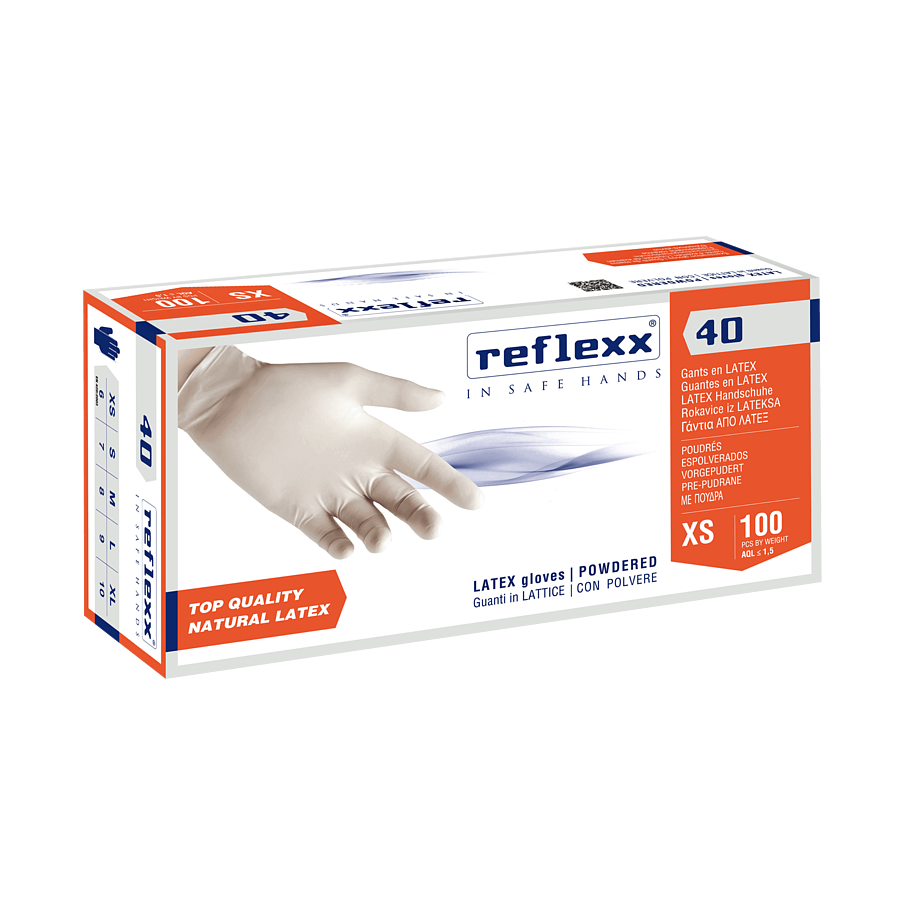 Одноразовые перчатки латексные 24 см. Reflexx R40-L. 5,4 гр. Толщина 0,09 мм. R40-L