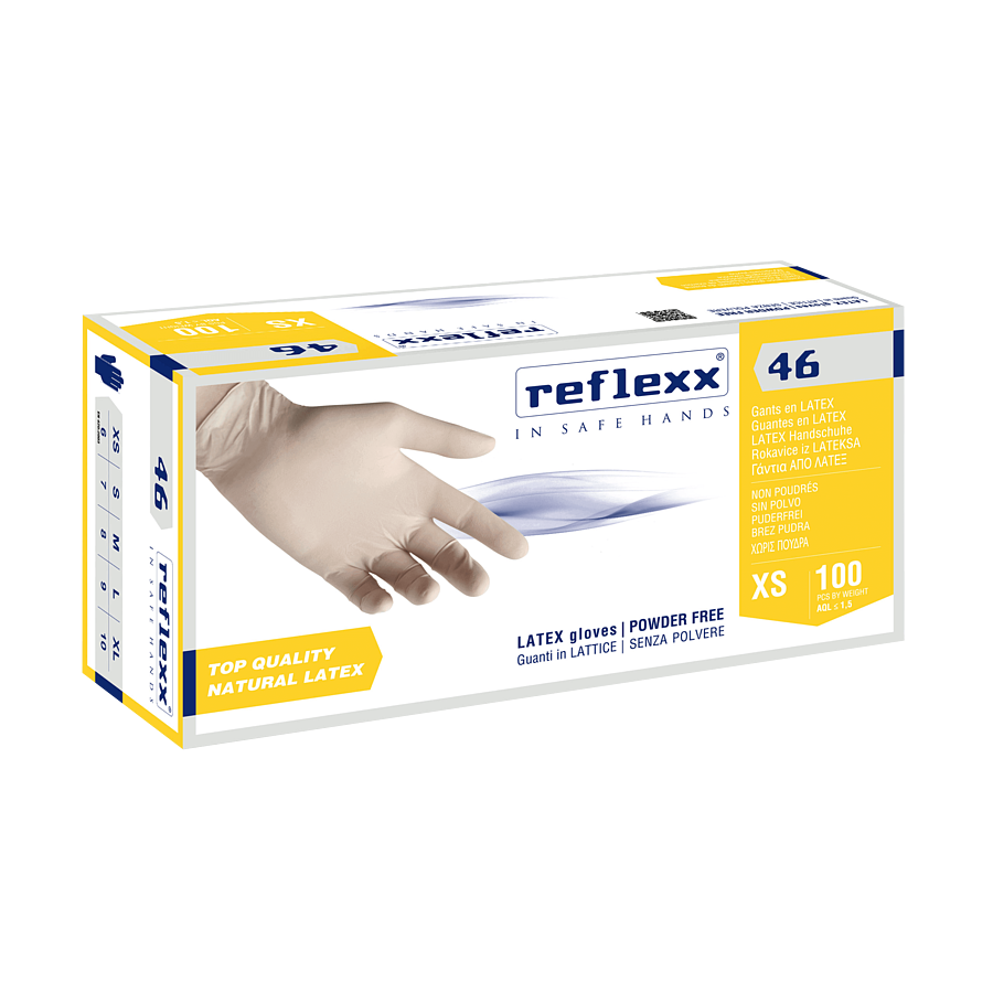 Одноразовые перчатки латексные 24 см. Reflexx R46-L. 5 гр. Толщина 0,1 мм. R46-L
