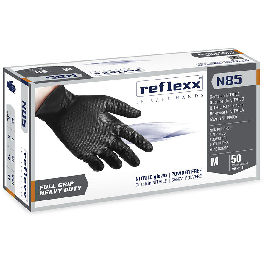 Сверхпрочные резиновые перчатки, нитриловые, чёрные, Reflexx N85B-M. 8,4 гр. Толщина 0,2 мм. N85B-M