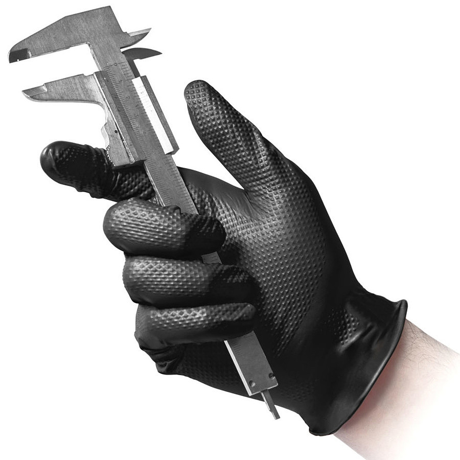 Высокая устойчивость к нагрузкам: специальная структура 3D Grip - и большая плотность перчатки - вес 8,4 гр при толщине 0,20 мм - делают их особенно пригодным для работы на сервисах, производствах и всё, что связано с механическими ремонтами, где степень разрыва перчаток значительно выше.