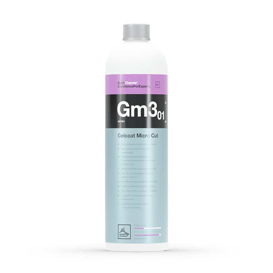 Полироль для машинной обработки подвергшихся легкой эрозии и матовых гелькоутов и лакокрасочных покрытий лодок и катеров для полного удаления следов предыдущей полировки, голограмм, мелких царапин. Выполняется полное механическое удаление голограмм и мелких царапин. Эффективен, хорошо полируется и легко удаляется с поверхности. Идеальная подготовка для последующего нанесения защитного состава.