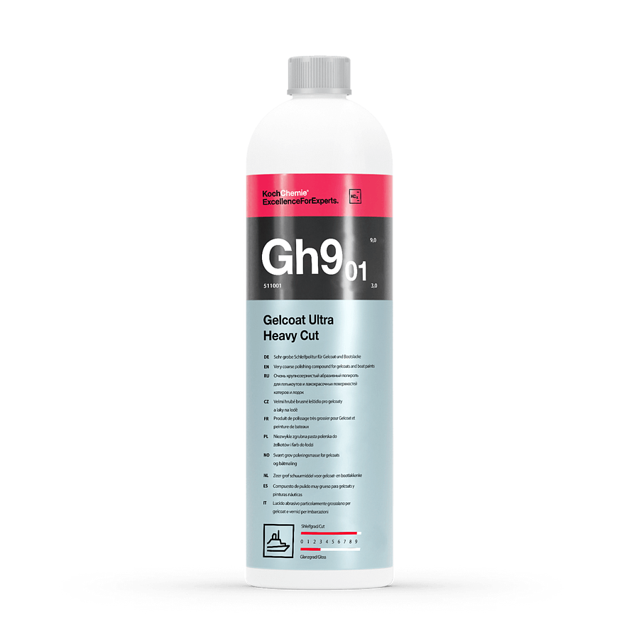 Высокоабразивный полироль для машинной обработки для для подготовки гелькоутов и лакокрасочных покрытий катеров и лодок, подвергшихся эрозии высокой степени. Также подходит для гелькоутов и лакокрасочных покрытий темного цвета. Эффективно удаляет посеревшие зоны, глубокие царапины и потертости, например, вызванные трением о кранец, и обеспечивает оптимальную подготовку поверхности для последующей полировки. Полироль Gelcoat Ultra Heavy Cut не содержит силиконовых масел и отличается низким количеством пыли и брызг, возникающих при полировании.